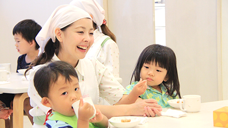 • 一般的保育所都必须在规定的时间统一到园。但是,以交换制工作的美容部员工因为上班时间是变动的,所以我们对到园的时间做了弹性设定。还有,对接待服务行业的妈妈来说,孩子突然患了感冒很难马上去就去接孩子,我们对此也有照顾措施。其他像通常妈妈要带的被褥和尿布等,考虑到上下班的负担也由保育所来提供。