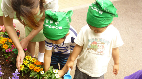 这里有韵律式授课(通过让身体感受有韵律的音乐,培养想象力和表现力,使身心达到调和的综合教育),还让孩子们有机会接触世界的地理、文化和音乐等。此外,作为地区一员利用京桥公园的美化改造制度进行花坛的维护,为了让孩子们进一步了解银座街区,还开展了从宝町到东京广场花园、和光的绕歌舞伎座一周的社会参观活动。