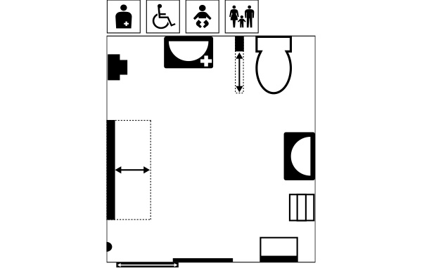 洋式便座/温水洗浄ボタン/トイレ流しボタン/背もたれ/手洗器/オストメイト洗浄/非常ボタン/介助シート(パブリックシート)/ベビーチェア/着替台/ゴミ箱