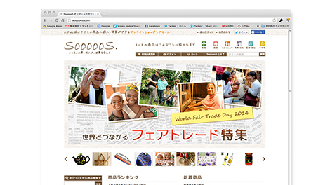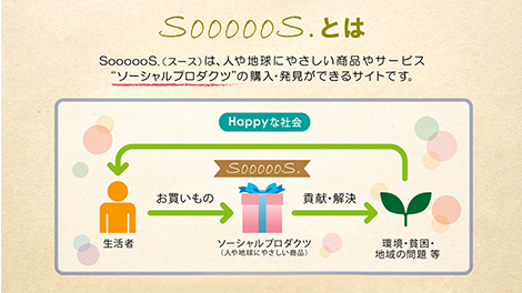 “银座×CSR”第15期,我们将为您介绍一家专业网上购物商城“SoooooS.”,它所涉足的是有关公平贸易※、有机、ECO、带有慈善捐赠的商品等关怀人类和地球的“社会性产品”。我们对担任公司总监的中间大维先生进行了采访。